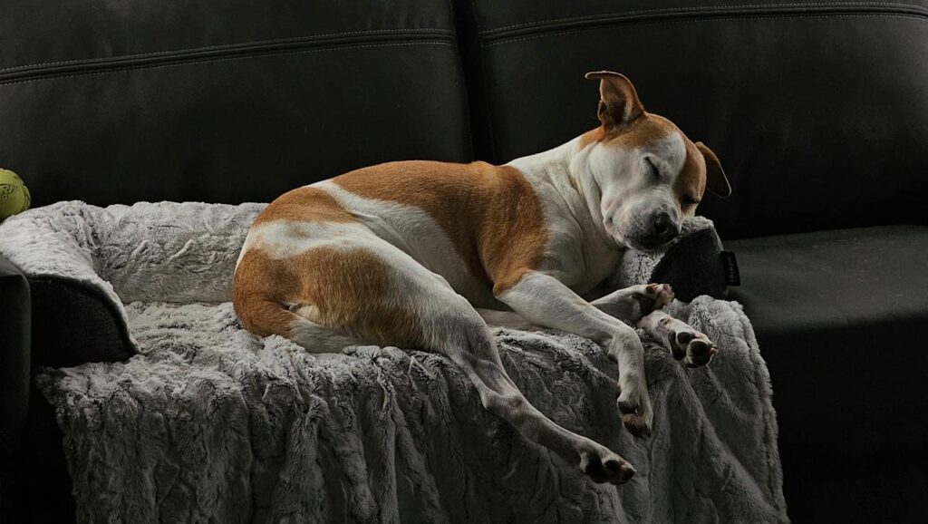 Foto: Ein Hund liegt auf dem Sofa und schläft