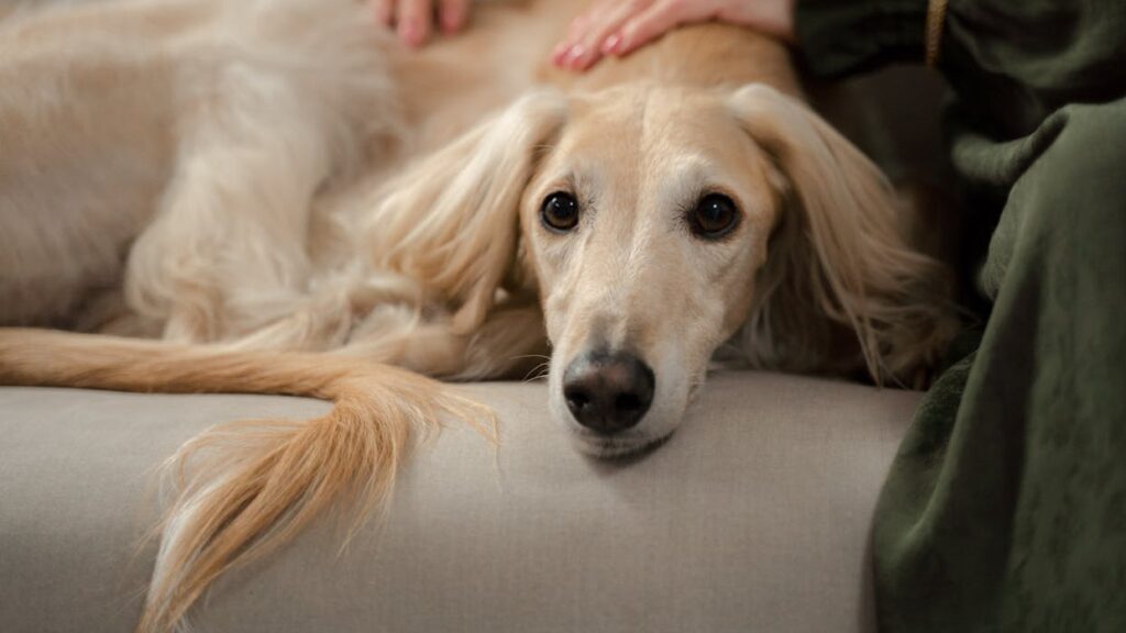 Foto: Ein Greyhound liegt auf dem Sofa