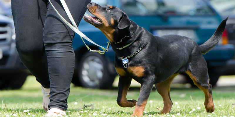Foto: Ein Rottweiler wird beim Hundetraining an der Leine geführt