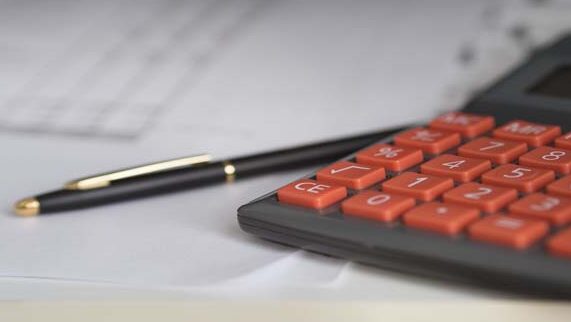 Foto: Nahaufnahme eines Taschenrechners und eines Kugelschreibers